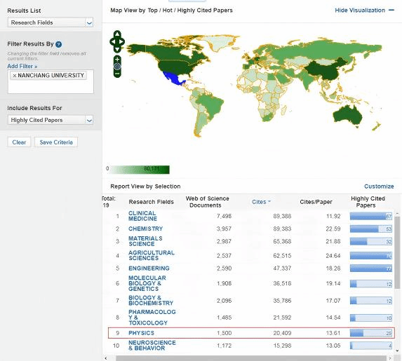 我校物理學(xué)科入選ESI全球前1%